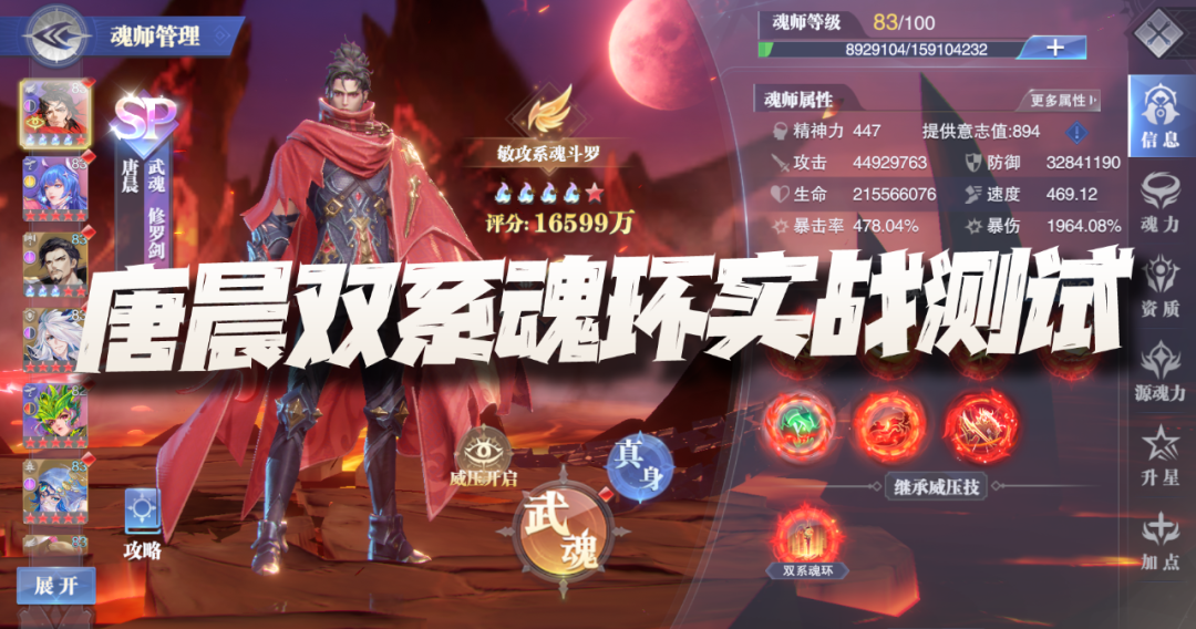 今天咱们的攻略分析文章来简单的聊聊唐晨的双系魂环到底有多大的作用,看看这次长风列列活动的性价比到底如何......(因为昨天没有悬赏,所以攻略今天出)