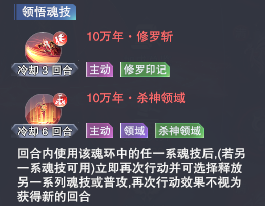 接着针对第4双系魂环,这就有点......尴尬了,在长图悬赏战斗中基本上就是很难能上场的表现,其中最关键的原因便是其会在使用1个第4魂技后自动追击另一个第4魂技,如果另一个第4魂技不能使用则会用普攻替代,而在长图中唐晨的普攻是可以直接结束【修罗印记】的,因此这点并不是很适合唐晨在长图中的使用。