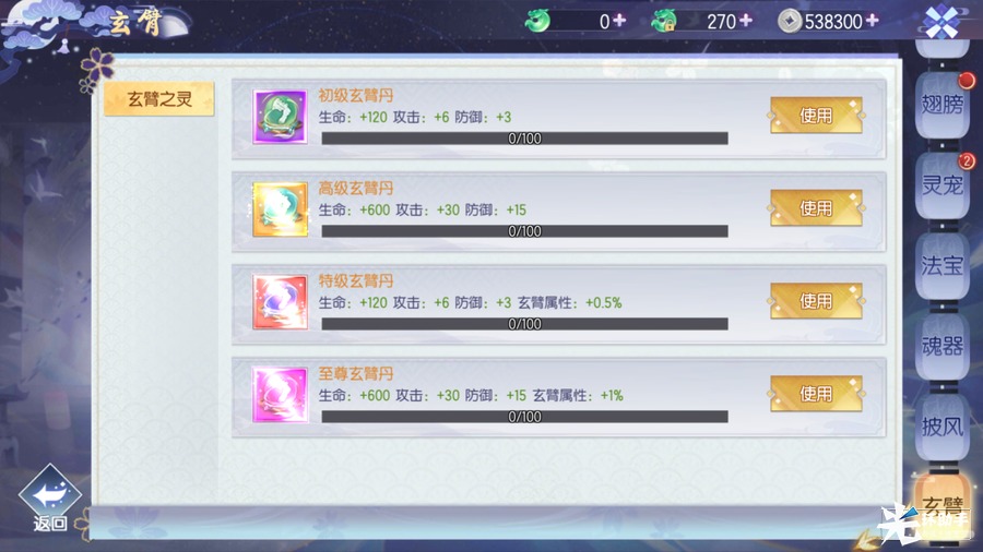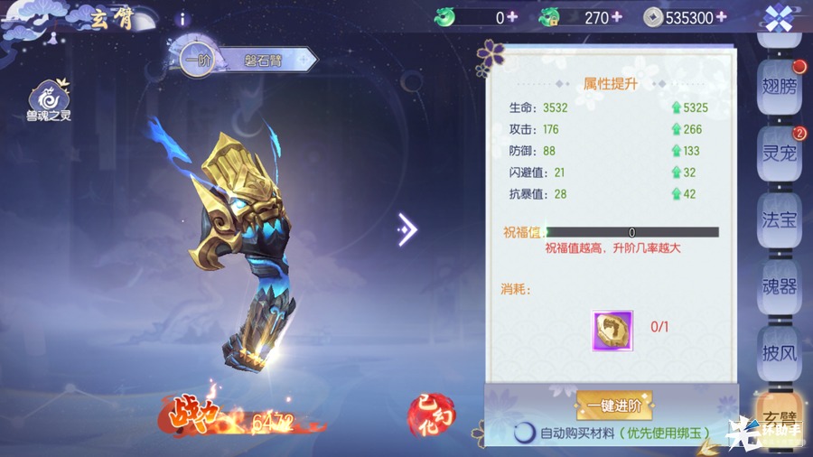 玄臂的等阶越高,所需要花费的进阶石数量越多,因此玩家在游戏的过程中,每天都需要完成玄臂试炼,以保证拥有充足的进阶石。
