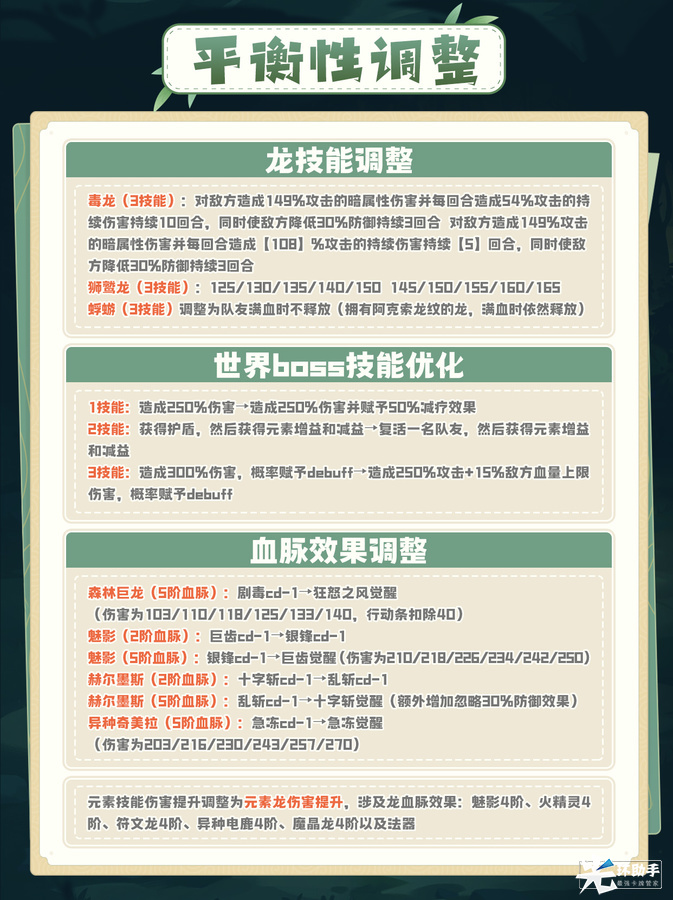 毒龙、狮鹫、蜉蝣技能平衡性调整;