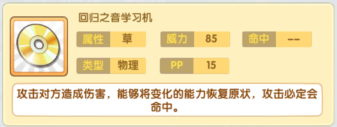 而且特性使用回归之音可以有几率加物攻。带上对焦镜片集气100%暴击。就有点恐怖了,说的没错。就是这样。对面无法强化无法集气,包括让你命中率下降也没用,回归之音必定命中。带了集气+对焦镜片,不需要带尖石攻击,命中太坑爹了。