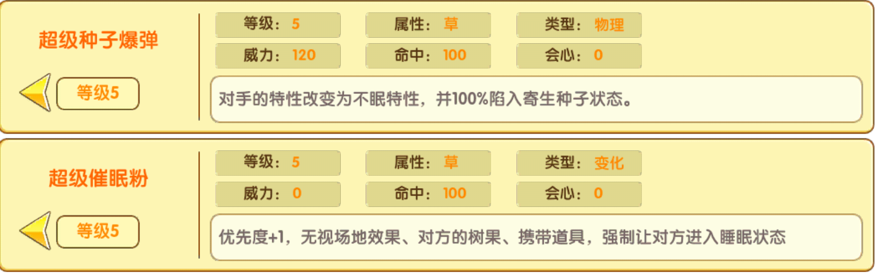 这个精灵之前我也有提到过。它的配招是睡眠粉+光合+蝶舞+四季之舞。利用美丽舞者特性,使用四季之舞舞蹈技能让对面攻击我方减伤,第一层30%,第二层45%,第三层60%,这个可以方便你队伍任何强化宠占场强化,什么队友搭配一只进去都是比较合适的。