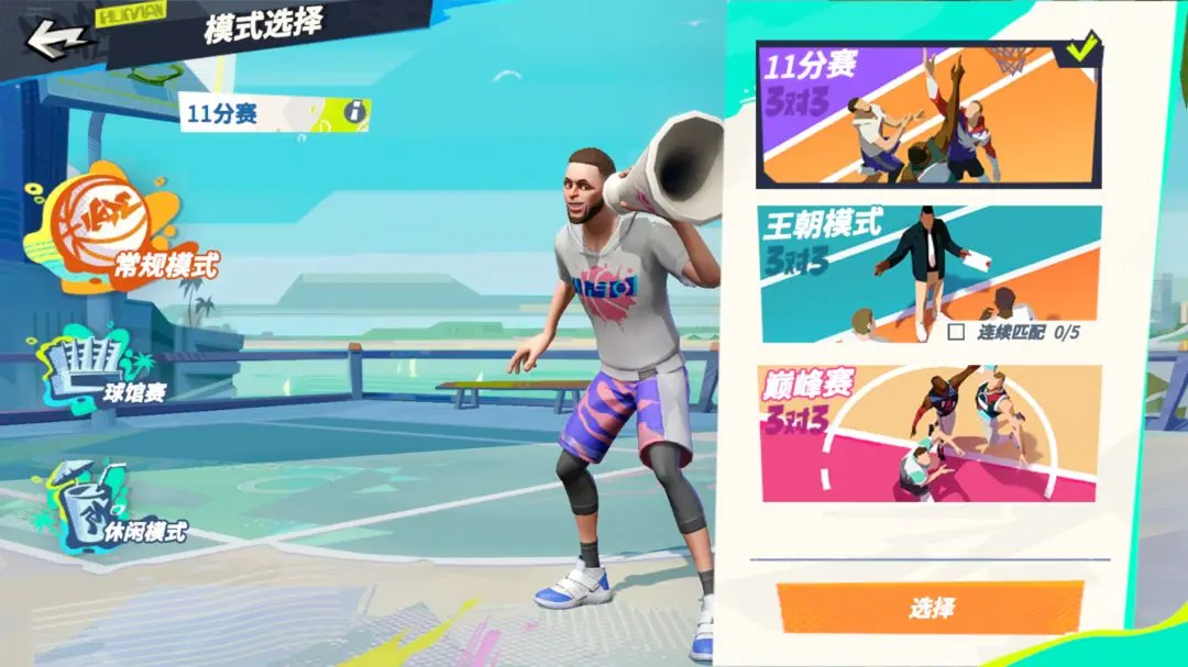 目前游戏中的常规模式比赛有3种,【11分赛】、【王朝模式】以及【巅峰赛】。