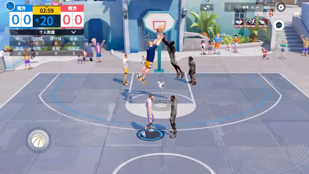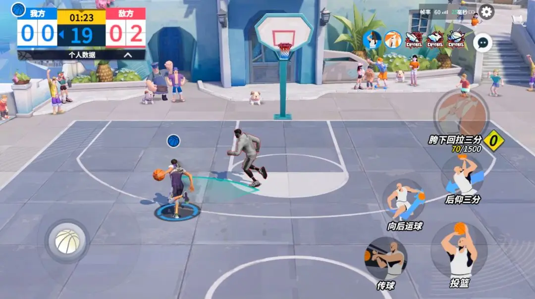 (2)进入比赛,各位巨星随时都可以通过点击右上角的球员头像,切换操作的球员,队友会进入托管模式,由系统控制自动比赛。