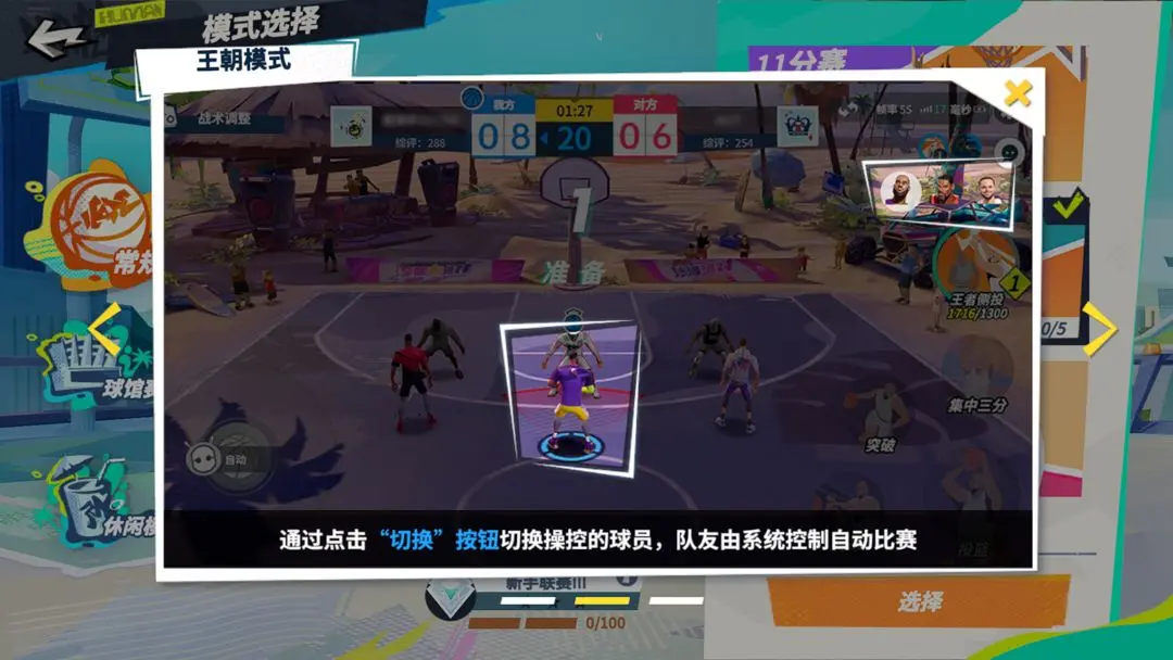 王朝模式是一项真人对抗,且可托管的段位制+赛季制街球比赛。