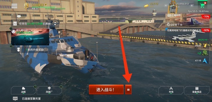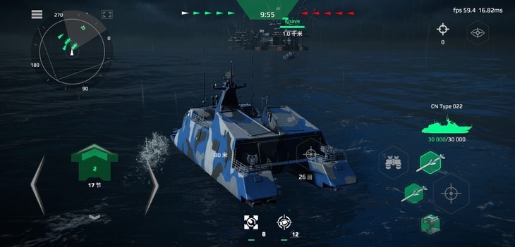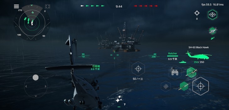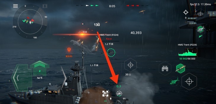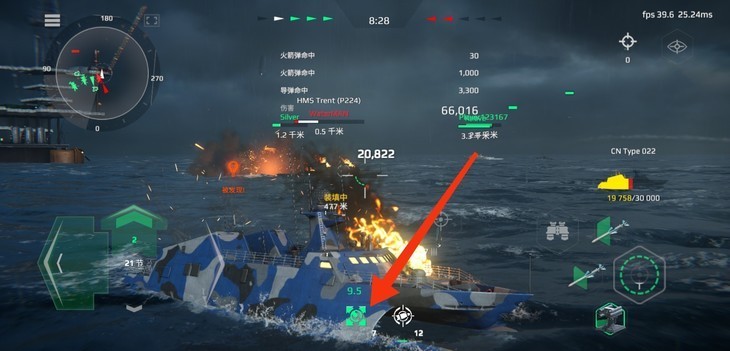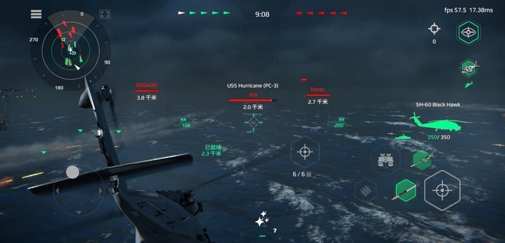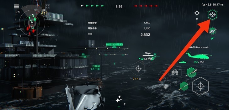 电玩灯后点击右上角的小眼睛回到战舰,再想操控直升机点击直升机的图标就行了,接着就可以对敌方战舰攻击了