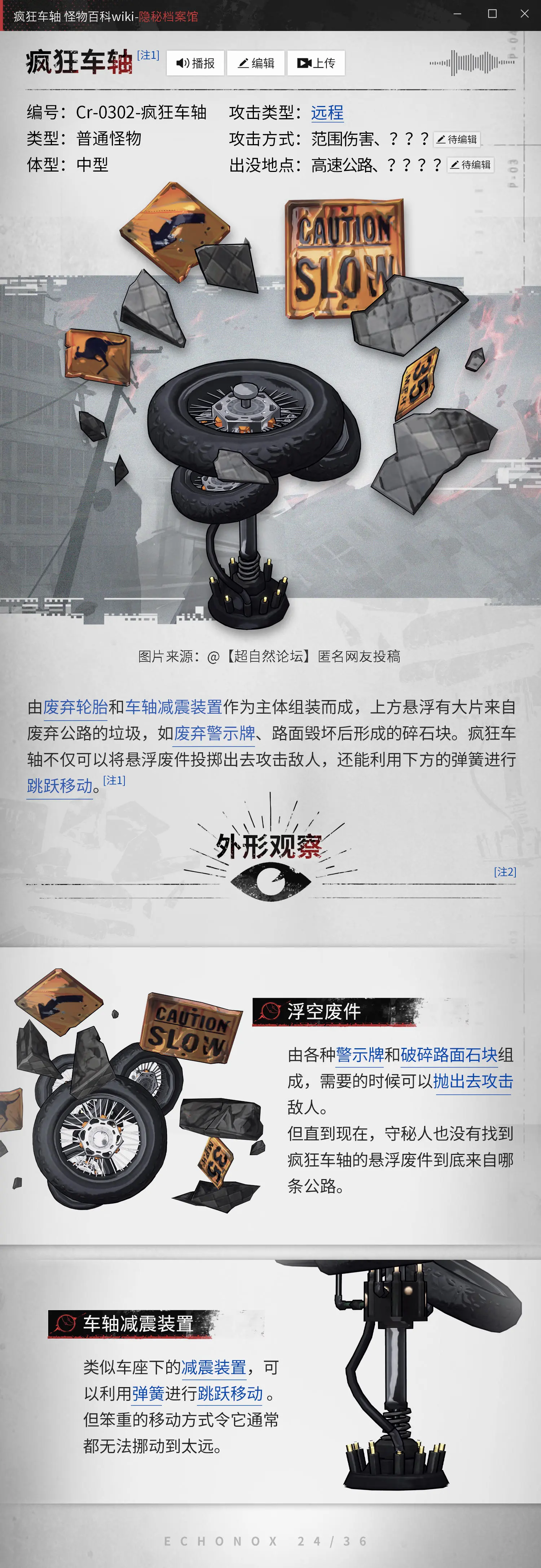 出没于高速公路,会用悬浮废件对过往车辆进行攻击的狂躁车轴……[展开↓↓↓]