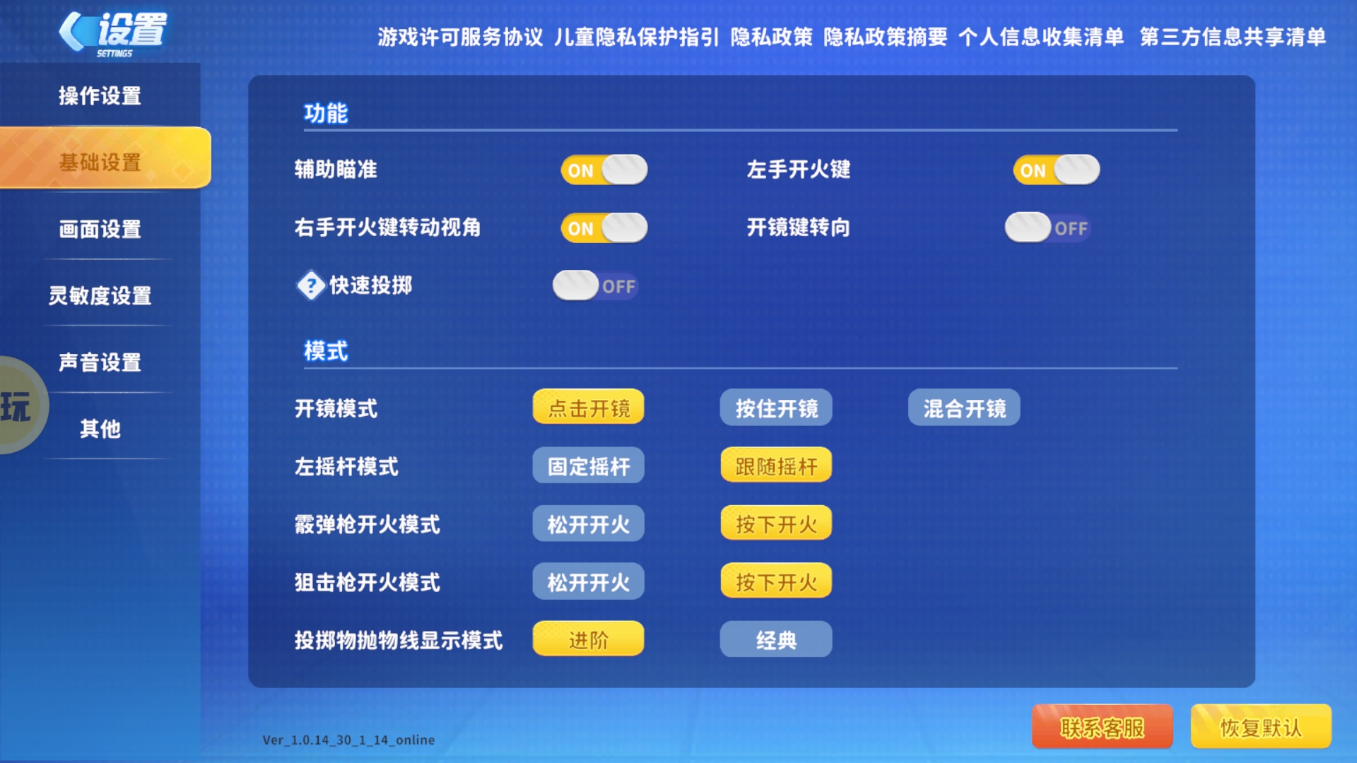 教学:打开设置,你会看到设置里面有很多菜单,其中对我们上分有帮助的有操作设置,基础设置和灵敏度设置。