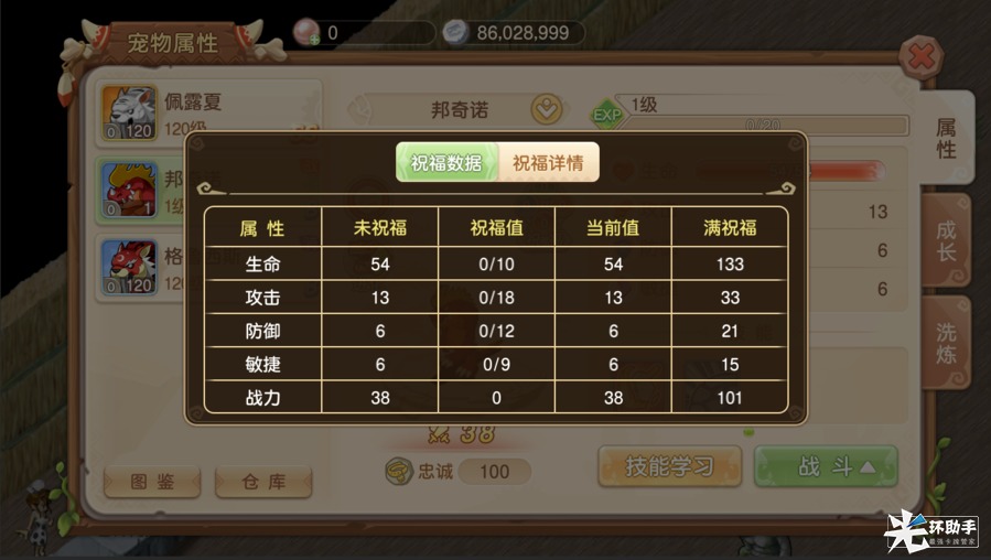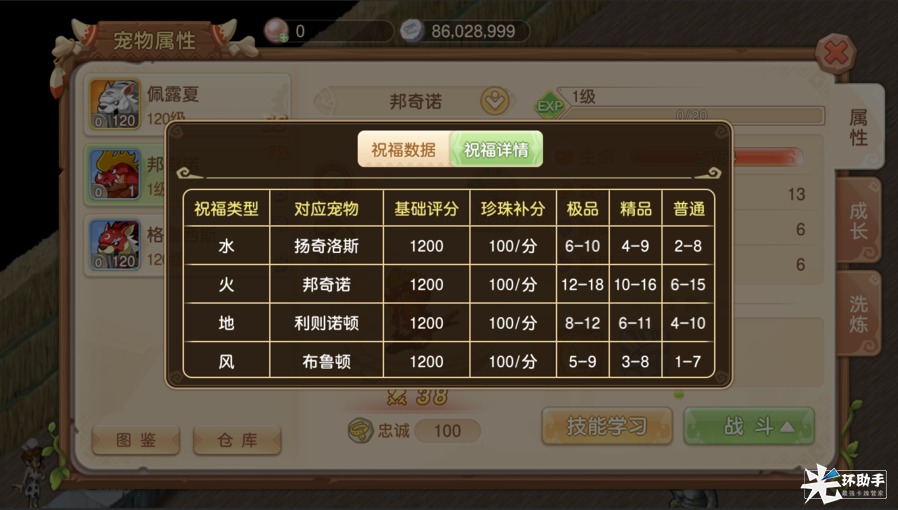 A.封印后获得对应宠物祝福石,只能对该系的宠物使用,增加一定的属性