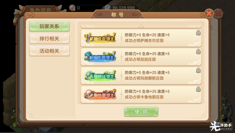 加加庄园领主:成功占领加加庄园族长专属;属性:防御力+5生命+25速度+5