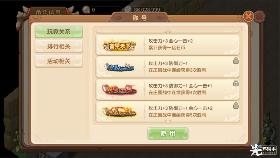 富甲天下:累计获得一亿石币;属性:攻击力+3会心一击+2