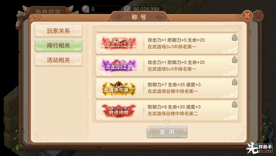 武道5V5王者:在武道会5V5中排名第一;属性:攻击力+1防御力+5生命+20