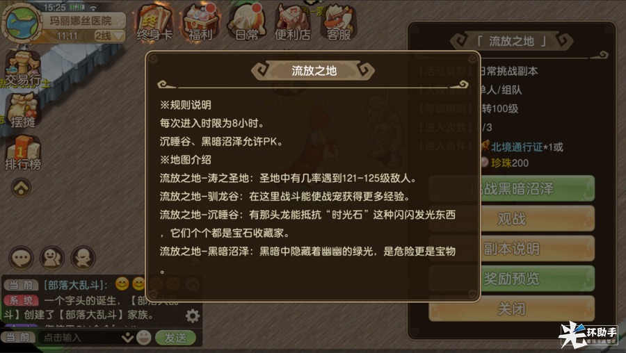 获得奖励:海量经验,石币,时光石,属性原石等道具(NPC处查看奖励预览)副本定位:挂机圣地,经验奖励丰厚,道具掉落丰厚,野外BOSS,可野外PK