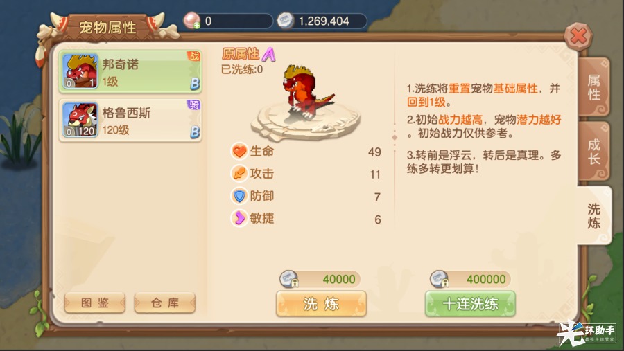对宠物进行十次洗炼