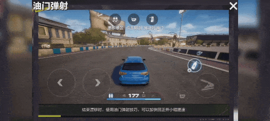 基础技巧,在绿色漂移区间点击刹车后滑动到油门即可实现一次弹射技巧!