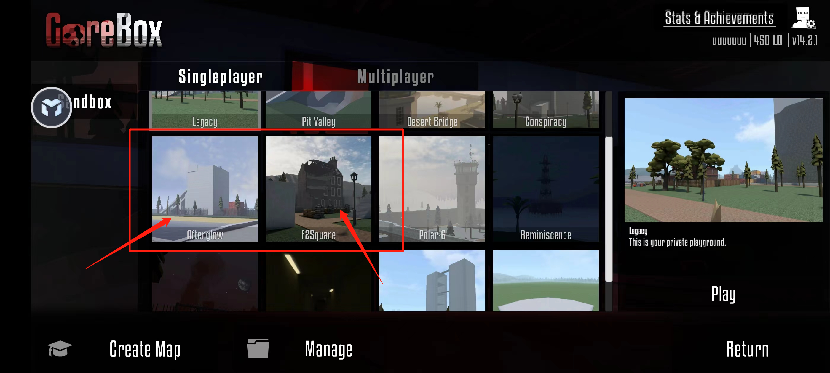 相比于新地图Afterglow,地图F2square玩起来就比较有意思一点了,迷宫式地图,外加了一点恐怖元素,以及在地图里还有很多建筑,适合拉上你的小伙伴一起联机玩耍。