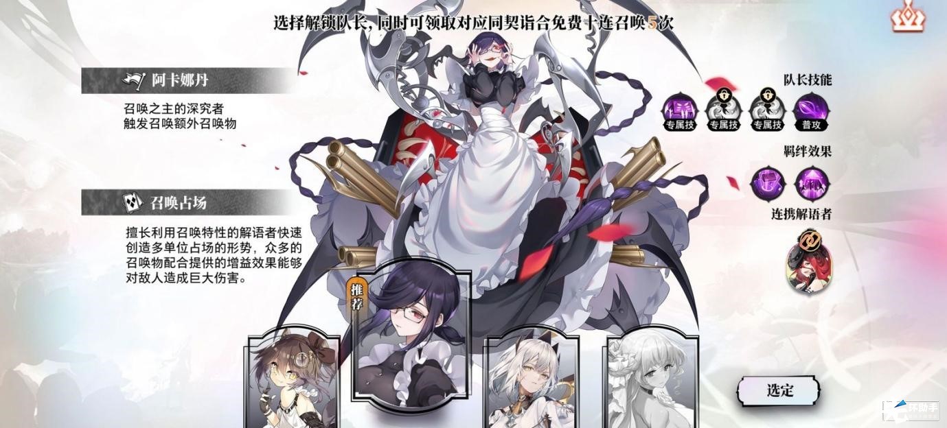 第一种是以阿卡娜丹为队长的召唤流,主要特色是召唤物驻场为战斗持续提供压力,可以搭配迈尔斯、赫拉、烛珥、伽利卡和贝兹等角色上场。