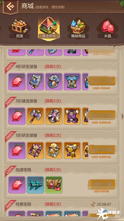 建造研发五星套装:减少建筑和研发所需要消耗的材料,属性永久有效!
