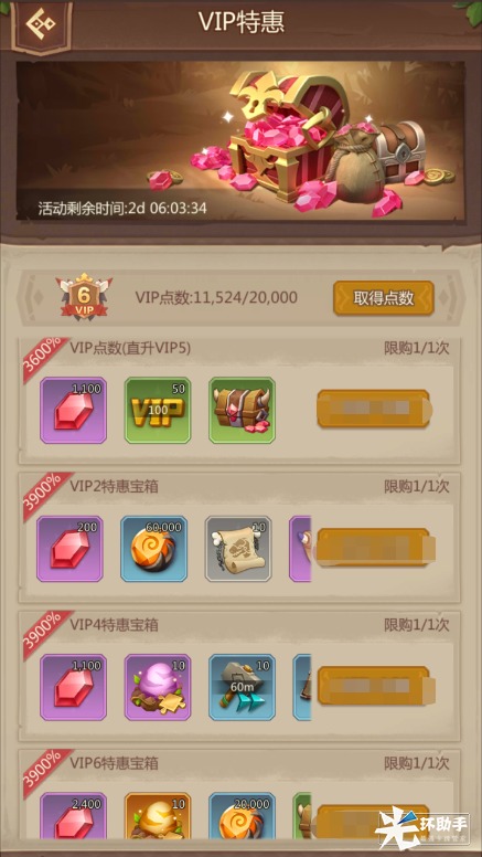VIP特惠:VIP礼包是一个性价比较高的礼包,能获得传说龙宠自选礼包、龙宠碎片、装备、宝石。达到VIP15可以购买稀有龙宠迅猛龙。VIP可以使用水晶升级也可购买特惠中的VIP点数升级。