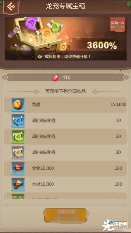 限时礼包:限时礼包分为多类,其中有首领大屋升级限时礼包、首领等级限时礼包、龙宠专属礼包等各种限时礼包、购买的性价比极高。