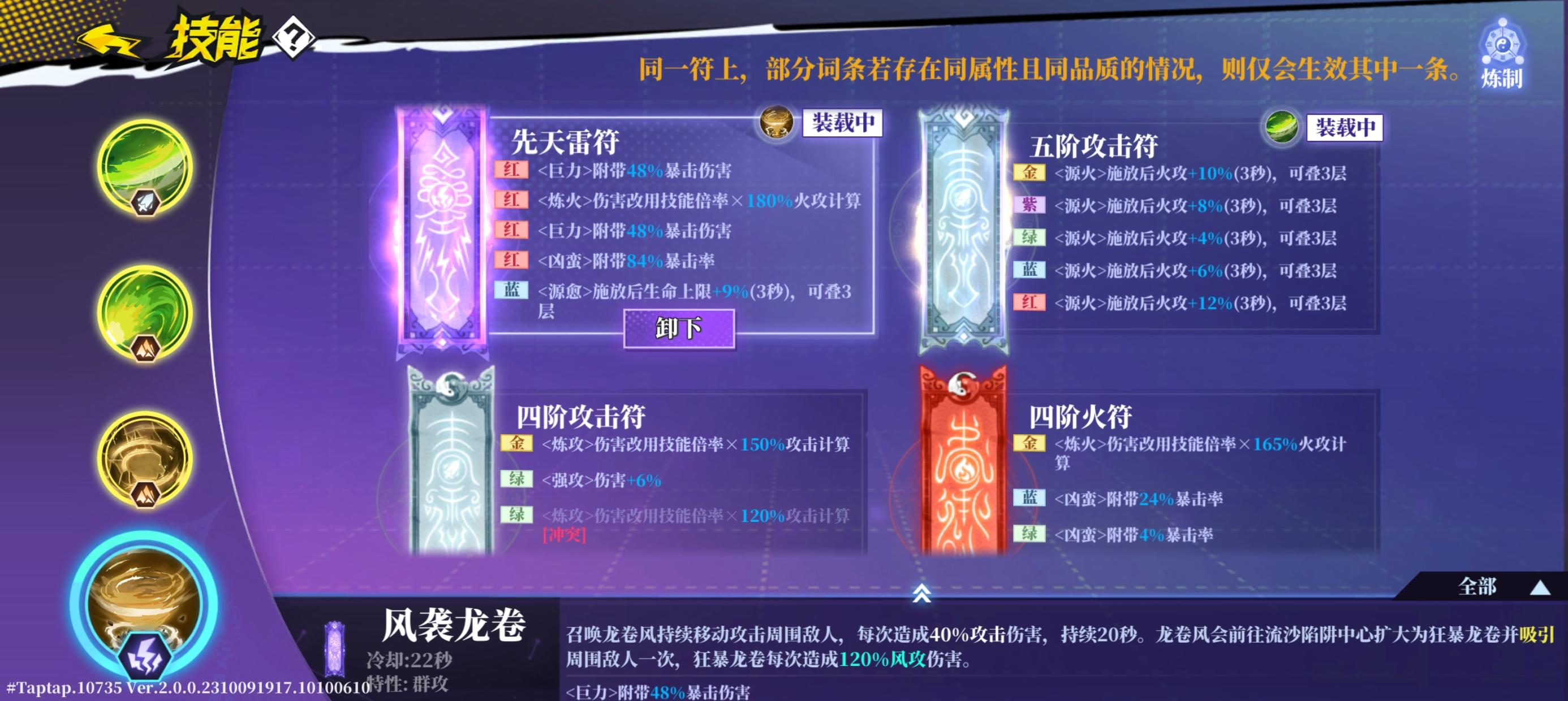 但是灼妖加强已经板上钉钉,区别于伤害加成、爆伤加成,灼妖带来的技能伤害倍率的加成是独一无二的,效果不会被稀释,是风三增伤的核心!而焰分炽风流,伤害基本全靠大招打,所以要摒弃一切除大招之外的额外伤害,只选择有以下加成效果的装备和残魂: