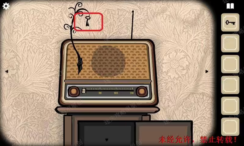 43、前往收音机处,依照之前场景的密码图案,在收音机上用左右两个按钮依序输入(如果中间按错,请退出收音机状态再进入收音机重新输入)。最后长出钥匙,得到。43、1