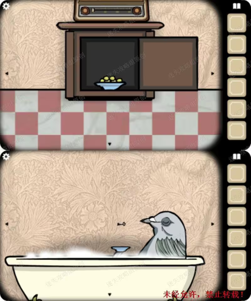 41、还是同一个场景,收音机下面的柜子用钥匙直接打开。得到玉米。直接将玉米交给鸽女士,让她全部吃完后碗里的钥匙点击后漂浮起来。得到钥匙。41、1