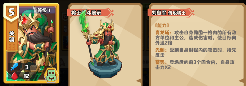 Q:有不少主公吐槽觉得关羽的强度是不是太强了?5费的单卡,不仅可以一击击退敌方三路大军,而且拥有【先制】的能力,近战的角色完全拿他没有办法。摘自一位主公的留言:"我一顿运筹帷幄见招拆招终于大军压境,一刀回退中原,两刀集体归西。"请问这个角色设计之初是怎么样的想法,之后会有削弱他的计划吗?