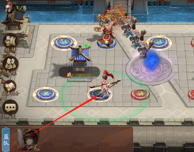 ✦进入战斗后,双方分为红蓝两方,若单人进行游戏,则只会存在一方阵营。每个召唤师有归属于自身阵营的塔座,只可在自身塔座中上阵英雄