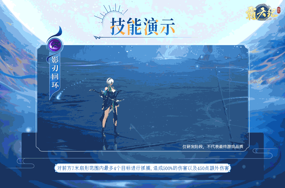 对前方7米扇形范围内最多4个目标进行抓捕,造成500%的伤害以及450点额外伤害。