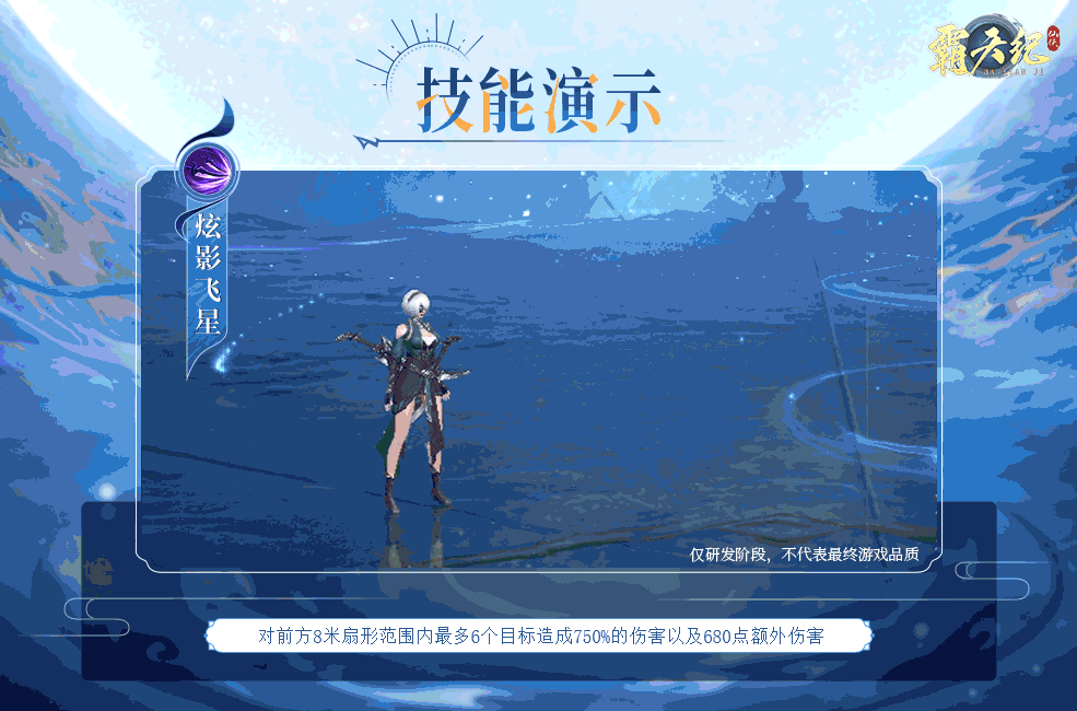 对前方8米扇形范围内最多6个目标造成750%的伤害以及680点额外伤害。