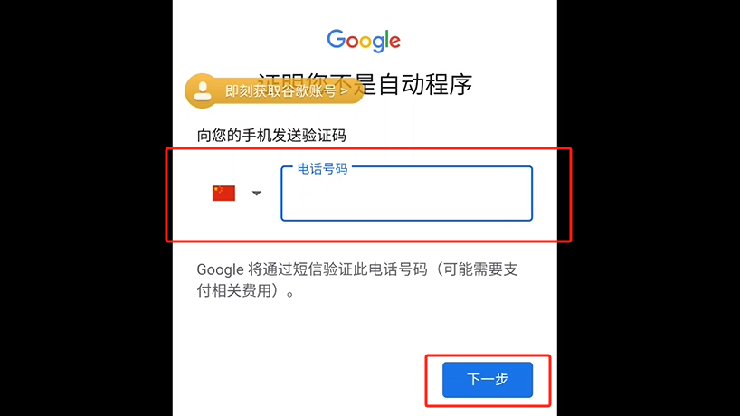 ⑩等一会加载后,输入能收到短信验证的手机号码