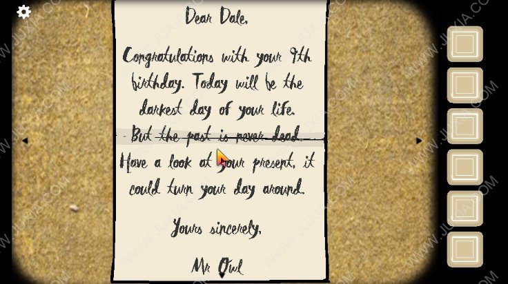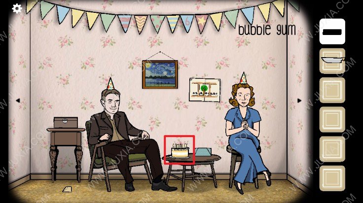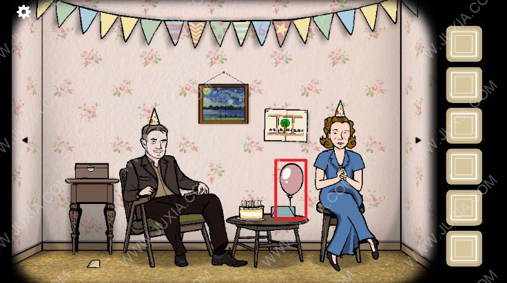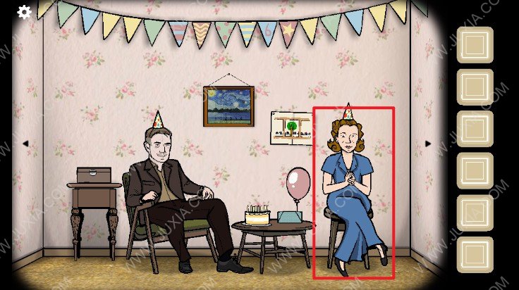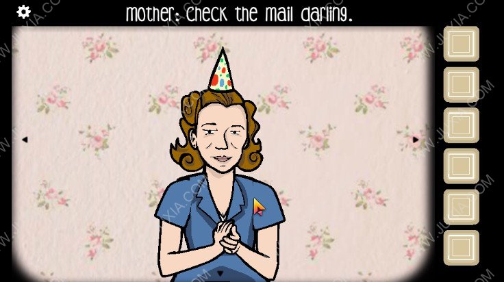 1.进入游戏我们可以看到一家人在举办生日派对,首先我们点击下图红色框位置的母亲进行谈话,母亲让我们去门外看一下邮箱。