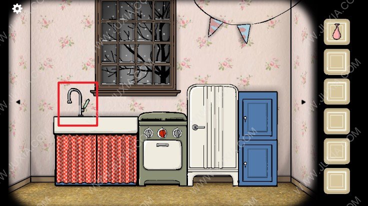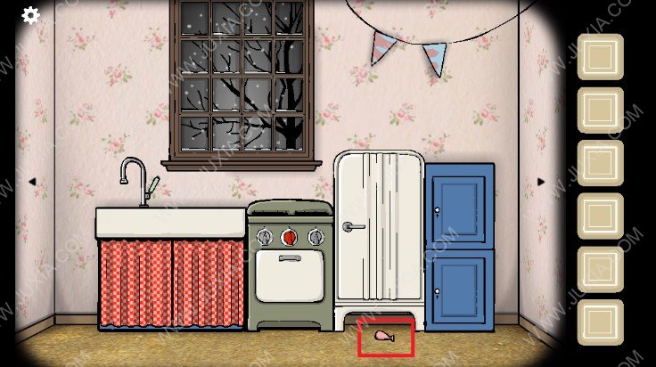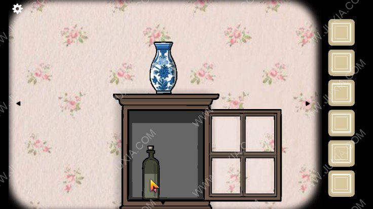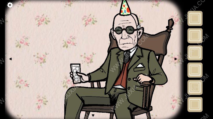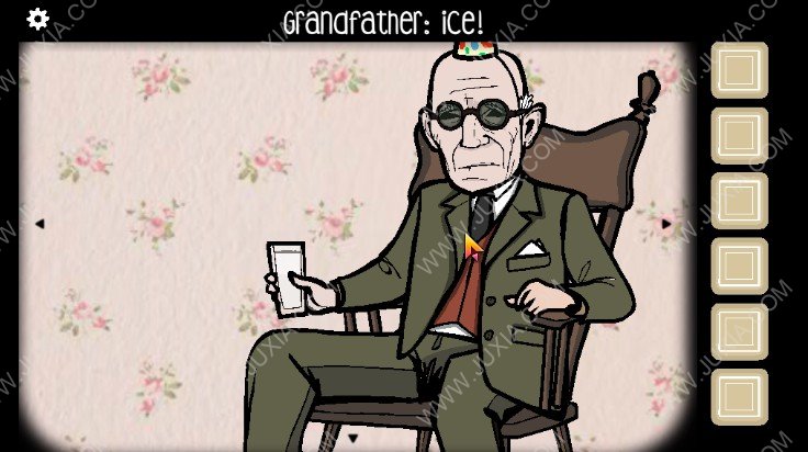 5.点击下图红色框位置的柜子,点击获得酒,然后将酒倒入爷爷手中的杯子,点击爷爷,爷爷会告诉我们需要一点冰块。