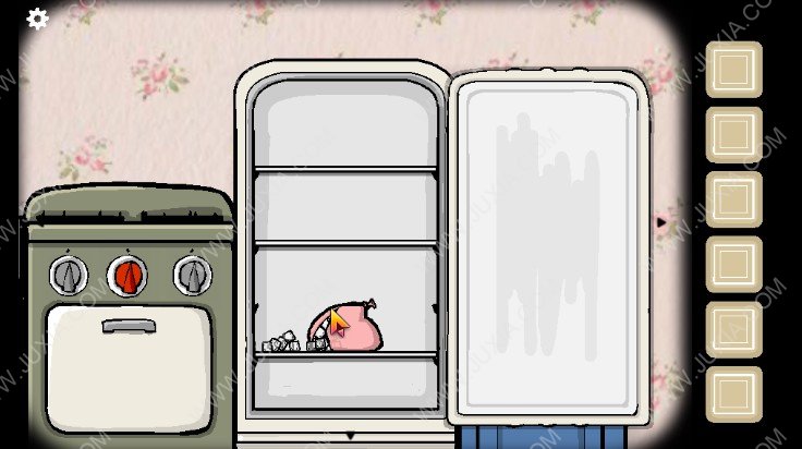9.将下图红色框位置的冰箱打开,将我们灌满水的气球放入冰箱,随后点击气球,点击获取冰块。