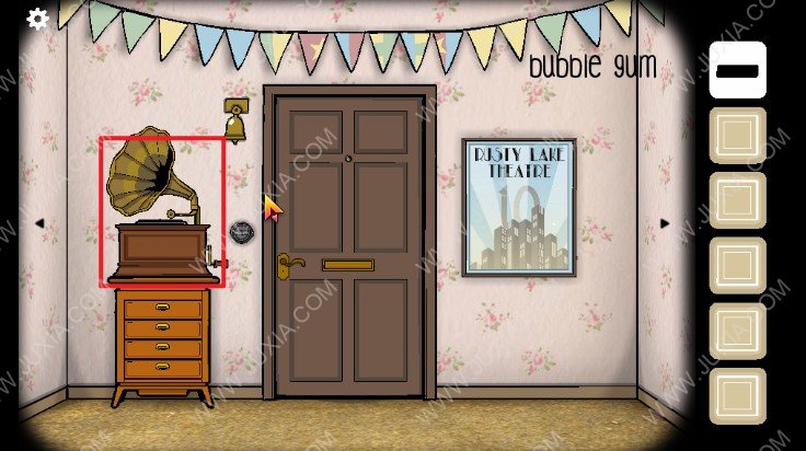 11.我们来到下图红色框位置的留声机点击查看,然后点击获得上面的泡泡糖。