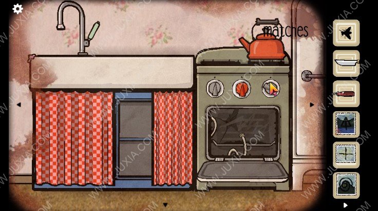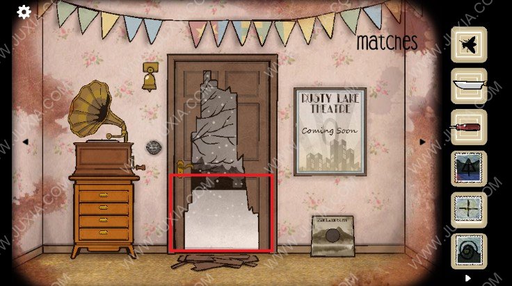 38.将获得的火柴对着,下方的煤气便会爆炸,我们点击获取下图红色框位置的管子。
