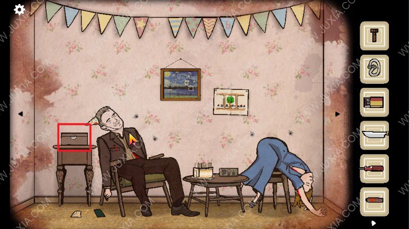 43.点击爸爸身后红色框内的盒子,获得盒子上面的硬币。
