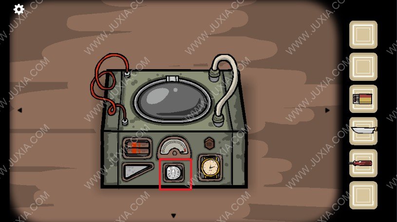 56.我们直接点击爷爷,爷爷会让我们打开盒子,我们来到机器位置将下图红色框的硬币拿回。