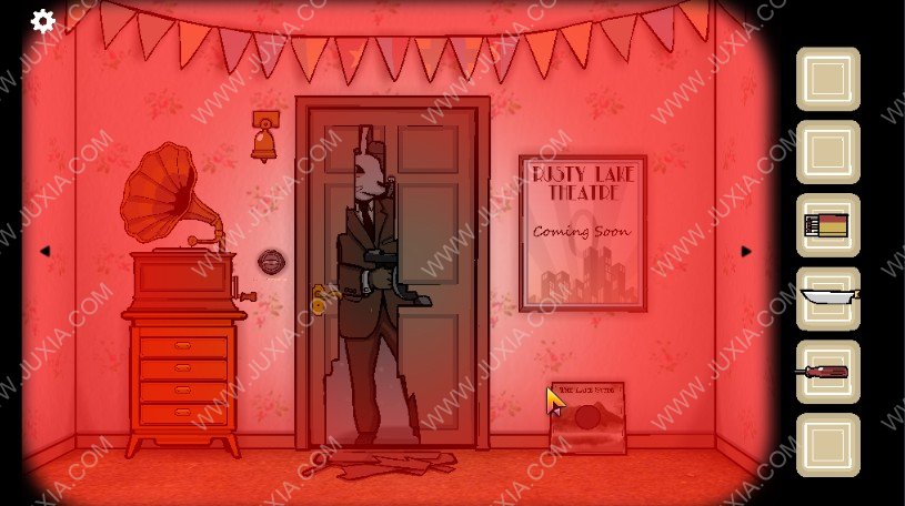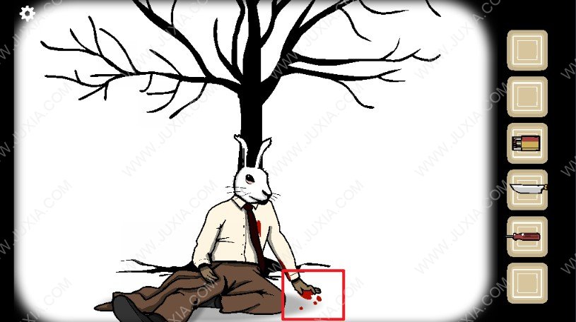 62.一路沿着血迹我们来到了兔人的位置,点击红色框位置的手进入剧情。