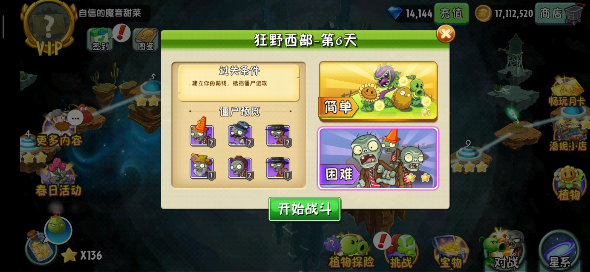首先我提供的第一个思路仍然是保守打法,用大量的防御阻挡僵尸前进,用后排输出植物慢慢消耗,但是因为淘金僵尸的存在,我们必然要在草地上种植双向射手,但是这也就意味着我们,对右侧来袭的僵尸的输出就变弱了。太阳总共就只有2000个,我们不可能种植自己手中高伤害植物的。
