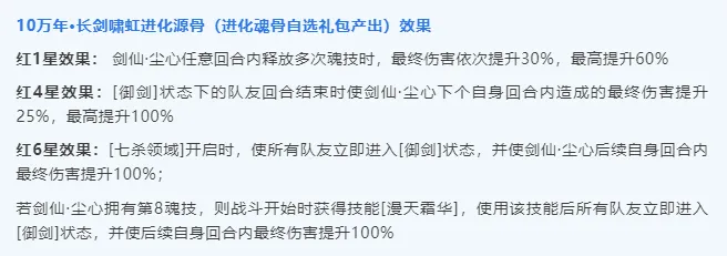 红6星效果也是一个绝杀,进一步提升回合内的最终伤害,同时还有一个直接进入御剑的选项,这这这......连很多朋友SP宁荣荣无法进入【御剑】的问题都给一并解决了,真是彻底的起飞态势啊