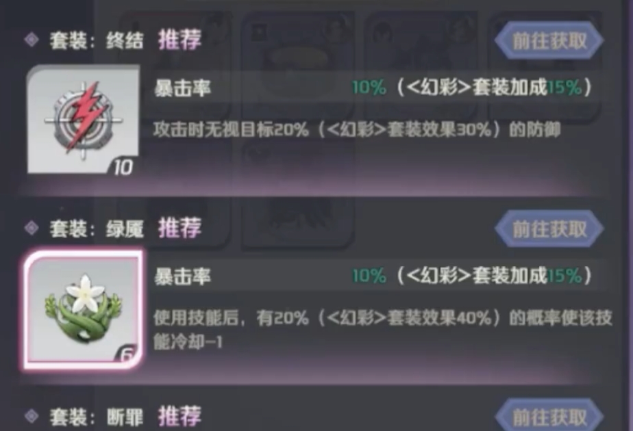 红雅尔需要较多的暴击率,可以选择面板附带或特效提暴击率的狐光藏品。藏品中,【终结套装】效果可能最好,无视防御。不知道技能的CD【绿魇】或许也比较好用。藏品附属性在暴击率达标后,选择暴伤和效果穿透,提升伤害上限和驱散的命中率。在有携战率的情况下,速度并不算最优,可以通过高速队友的攻击来让其参与伤害,实现暴击,方便叠层数buff。