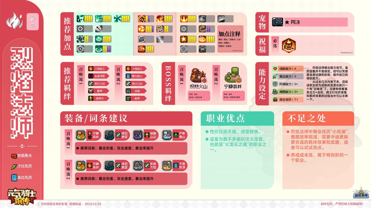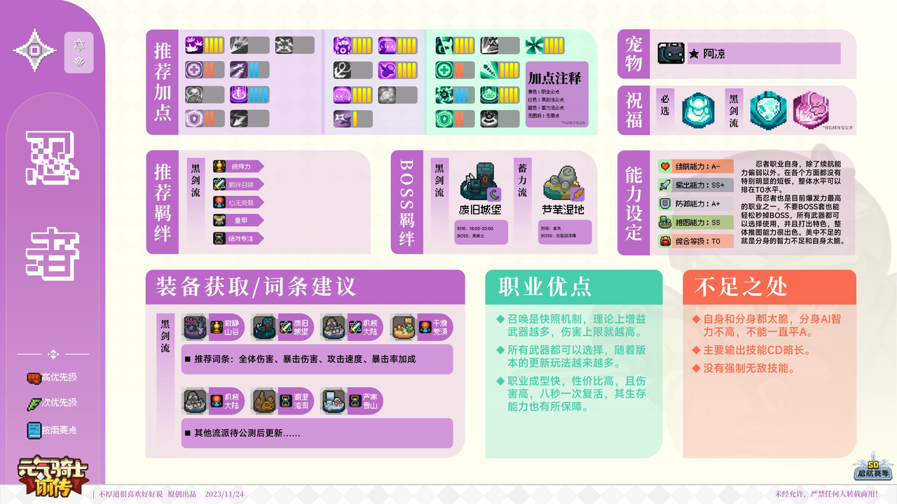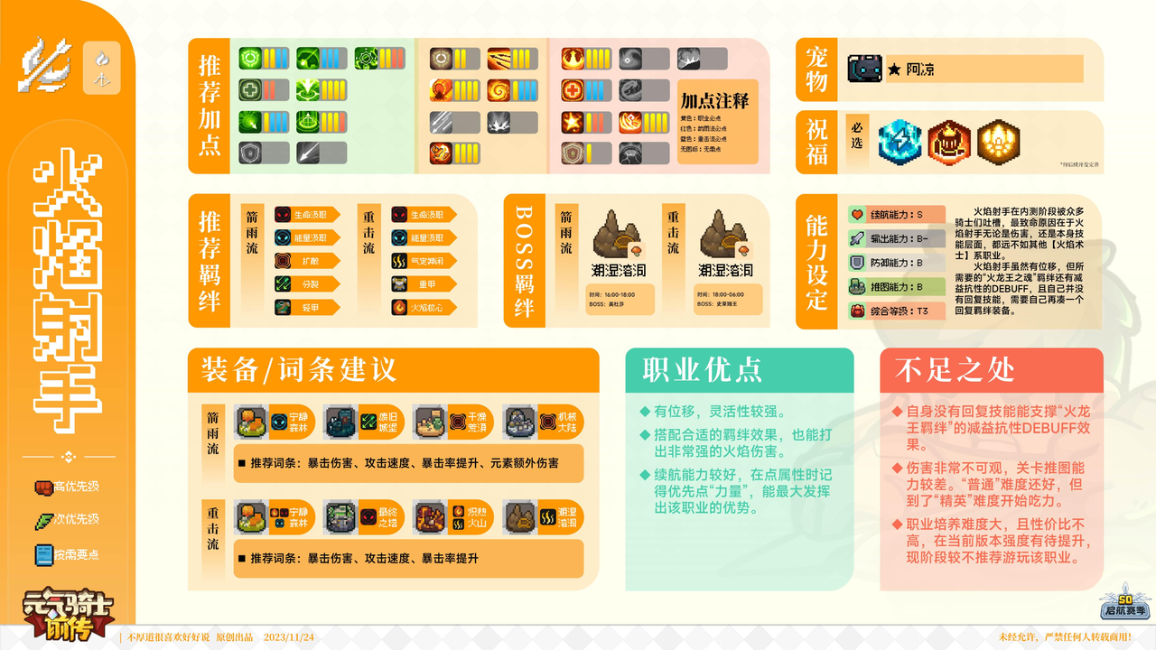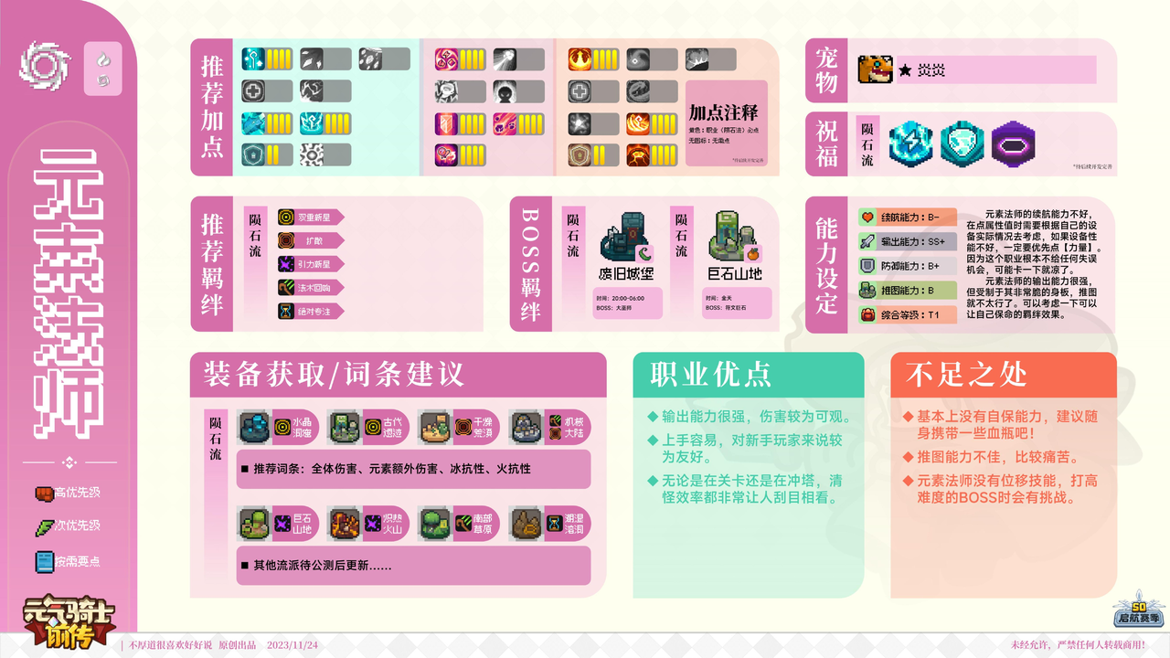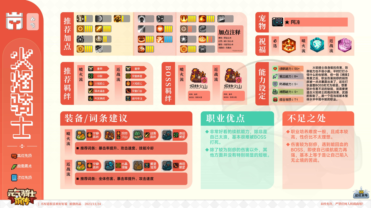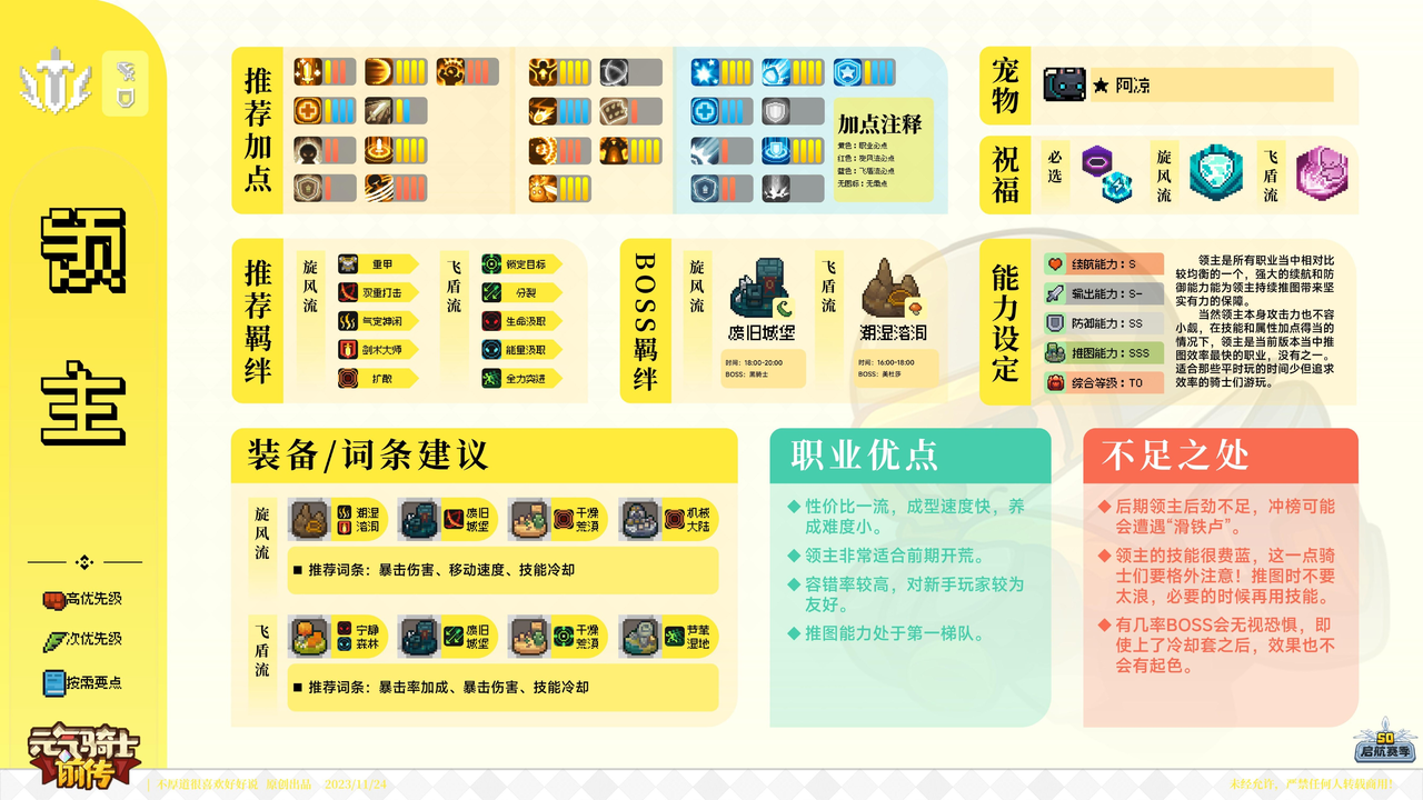 一图流的最大作用是为了帮助萌新能够快速了解该职业的大致情况,如果想要在中后期提升自己实力的话,光靠“抄作业”肯定是不行的。建议各位骑士们根据“一图流”当中的部分内容,自行开发出属于自己的流派。