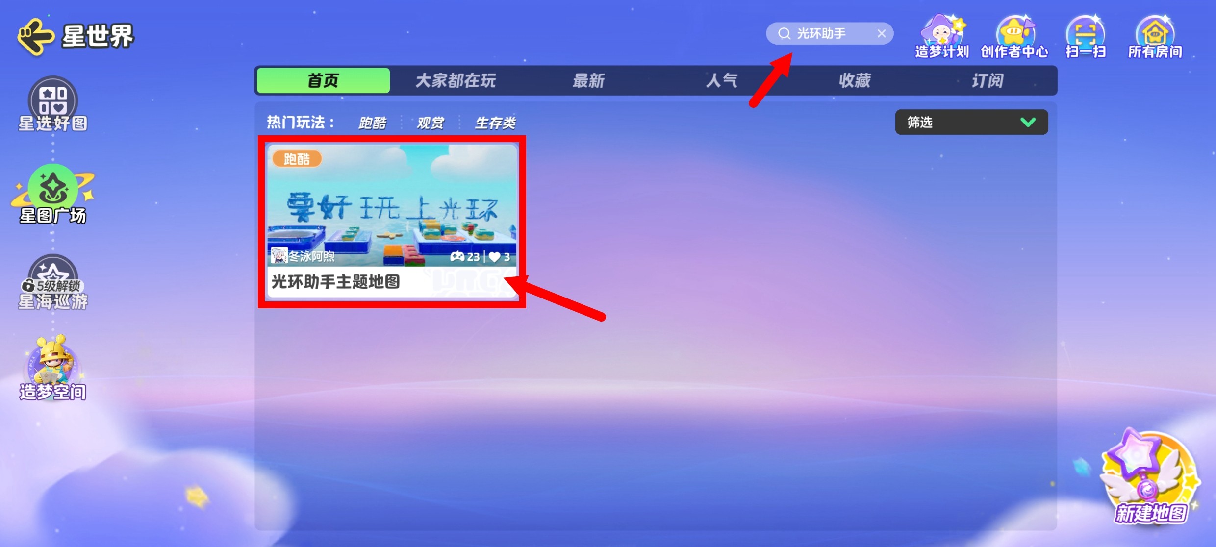 1、在游戏中【星世界】→【星图广场】中搜索【光环助手主题地图】参与比赛,并成功到达终点截图发布在评论区即可