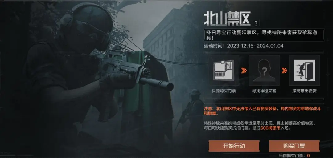 注意: 北山禁区中无法带入已有物资装备,局内物资将帮助你战斗和撤离