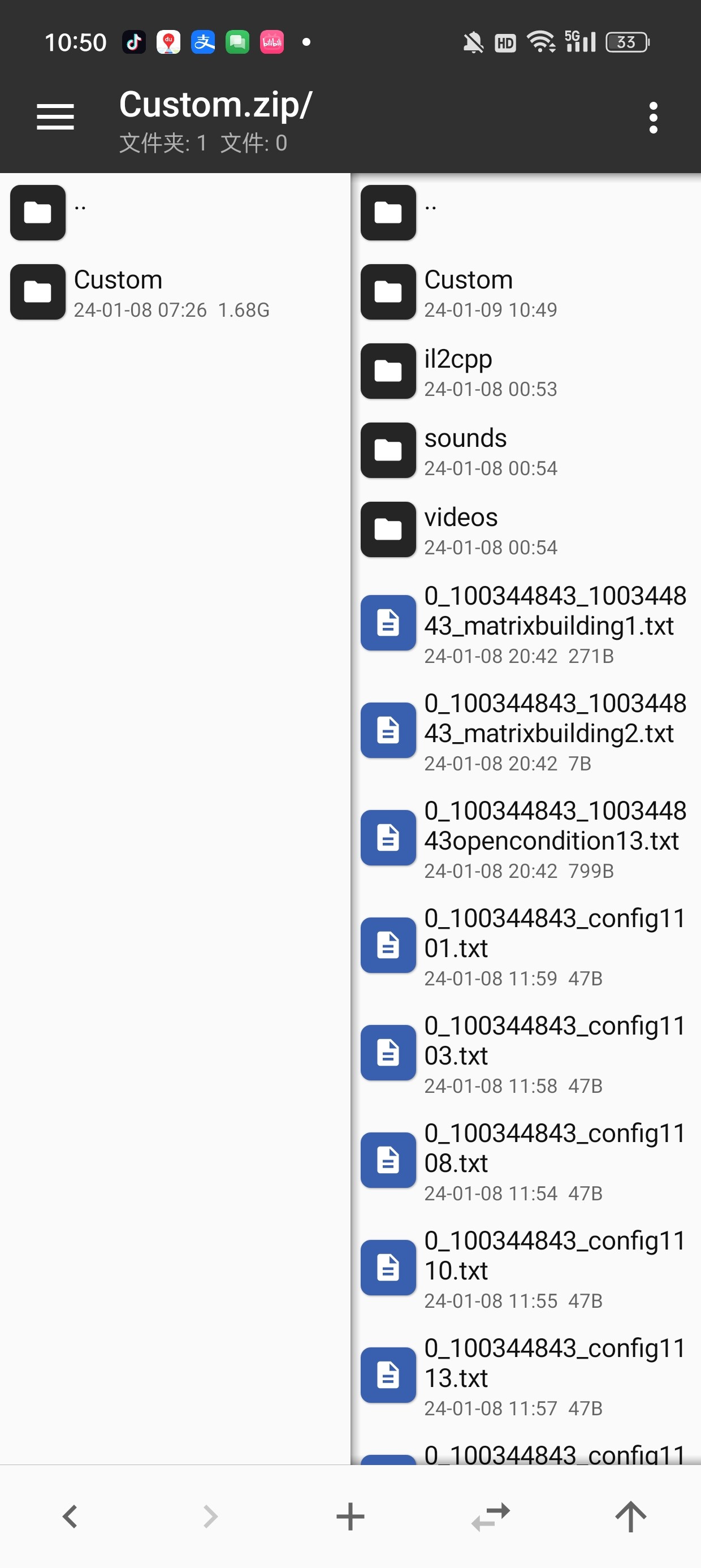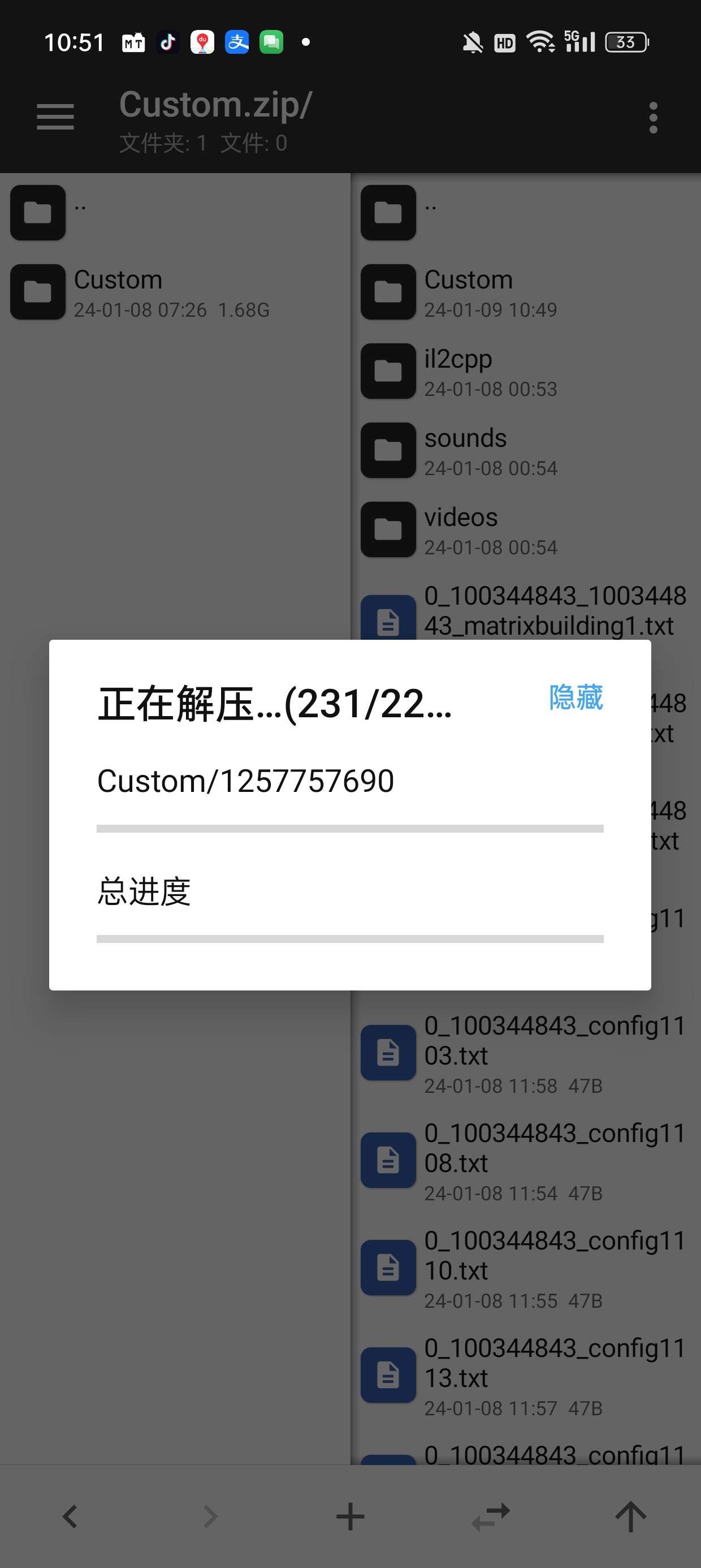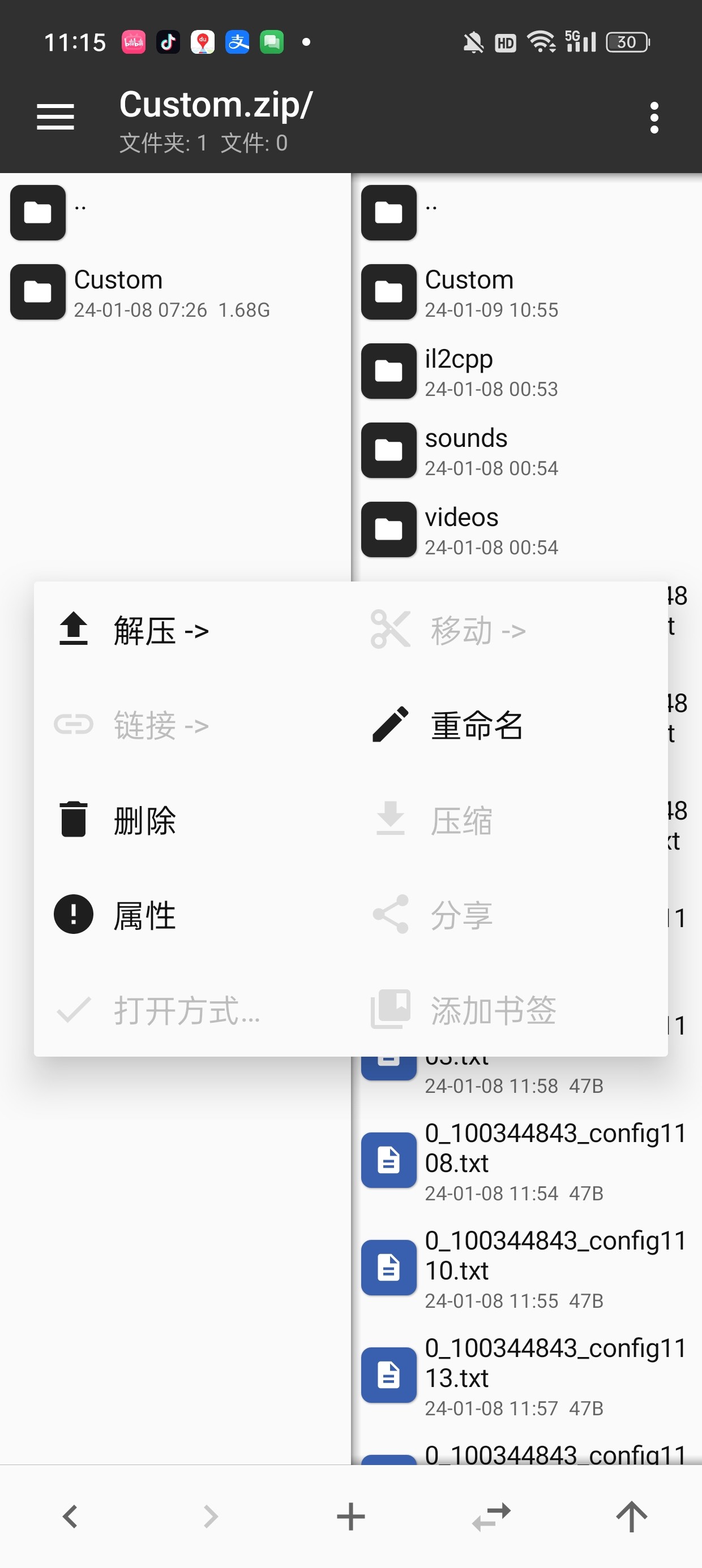 然后到了这个页面,长按左方的Custom文件夹,点击解压