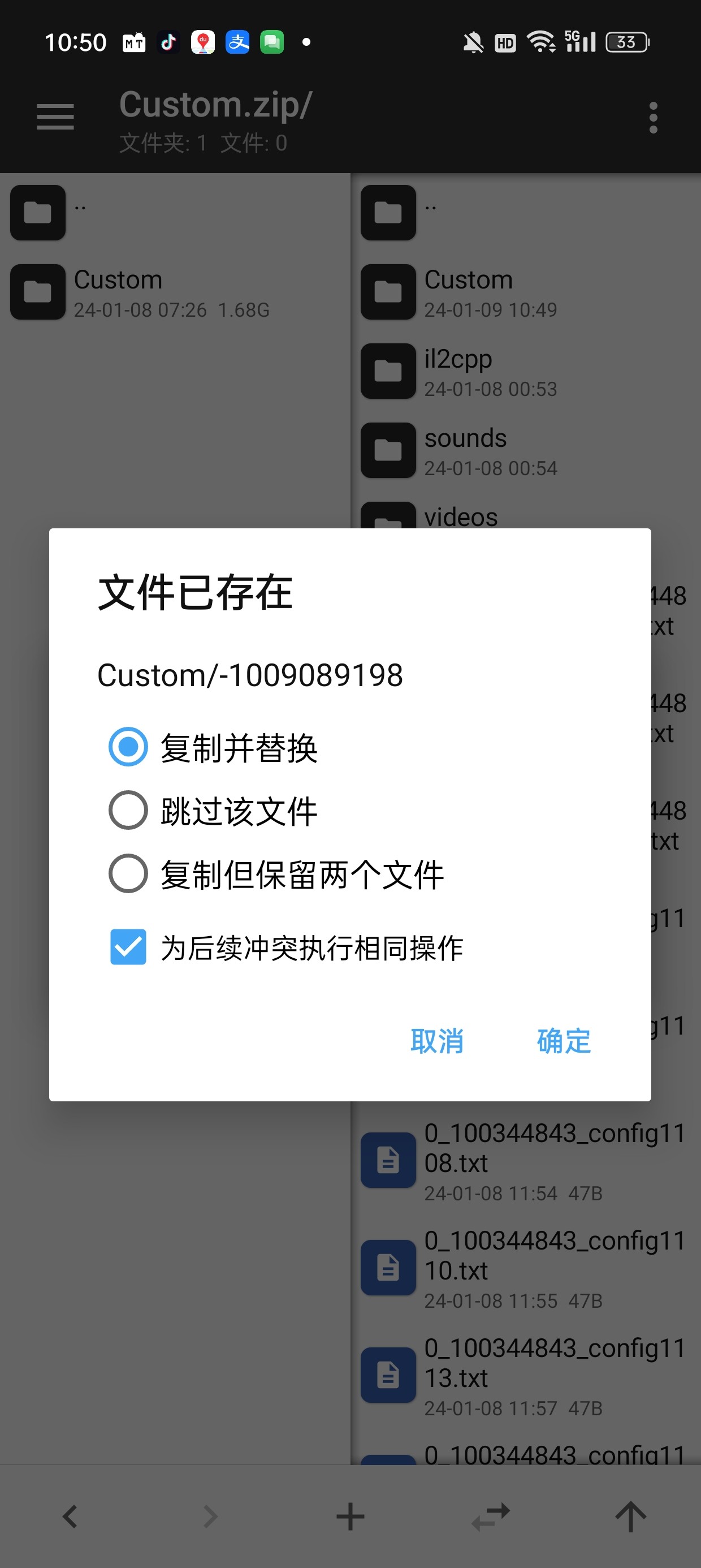 然后和手机端操作一样,将下载下来的Custom文件替换掉原来的Custom文件即可成功~