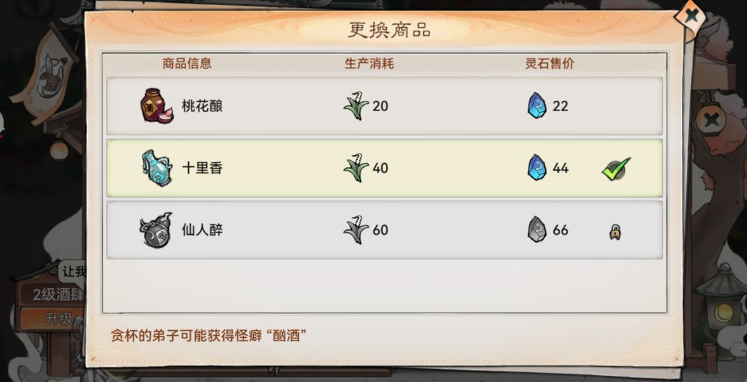 宗门内还可以建筑商铺,通过对应的资源换取灵石,有的商铺会给弟子带来红色特质,比如酒肆