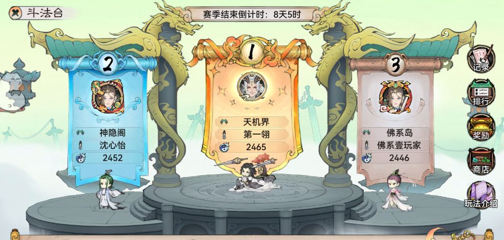 可以把斗法台理解成玩家和玩家之间的pvp,通过攻打其他祖师的防守阵容获取问道值和奖励。每个赛季会持续14天,在每个赛季的最后一天22点结算奖励,之后休战,12小时后开启新赛季并且问道值充值为1000分。